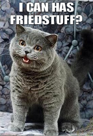 If you don’t like LOLCats, then I can’t help [halp?] you. If you don’t like fried stuff, then go find a LOLCat parody with a macrobiotic bean sprout theme, hippie.